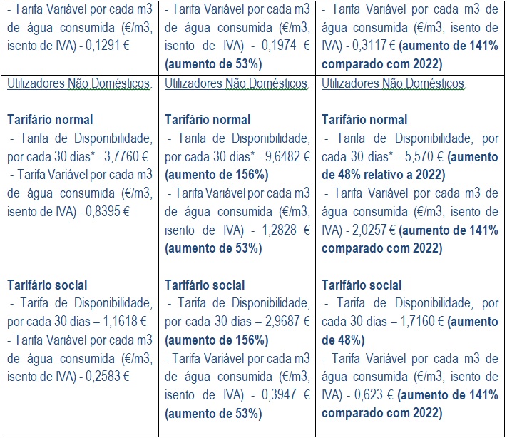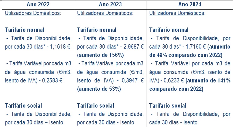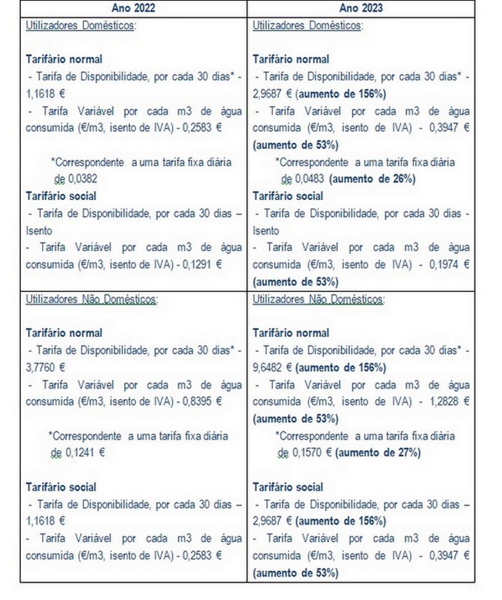 1. A proposta de tarifa de resíduos urbanos é em tudo igual à do ano anterior, ou seja, 2022, no que diz respeito à fundamentação, todavia, se nos valores a cobrar em 2023 houve um "brutal aumento de impostos" para os seus utilizadores domésticos e não domésticos, quer no tarifário normal, quer no tarifário social, nos valores a cobrar em 2024 a tendência mantém-se.